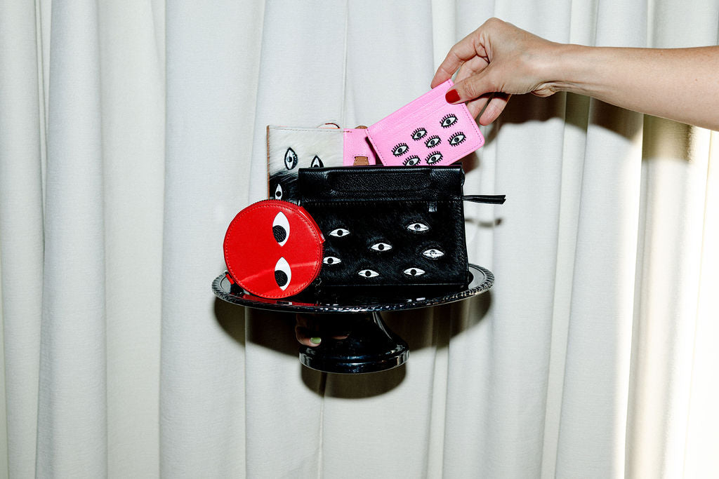 Embroidered Eyes Leather Shoulder Strap: Black -